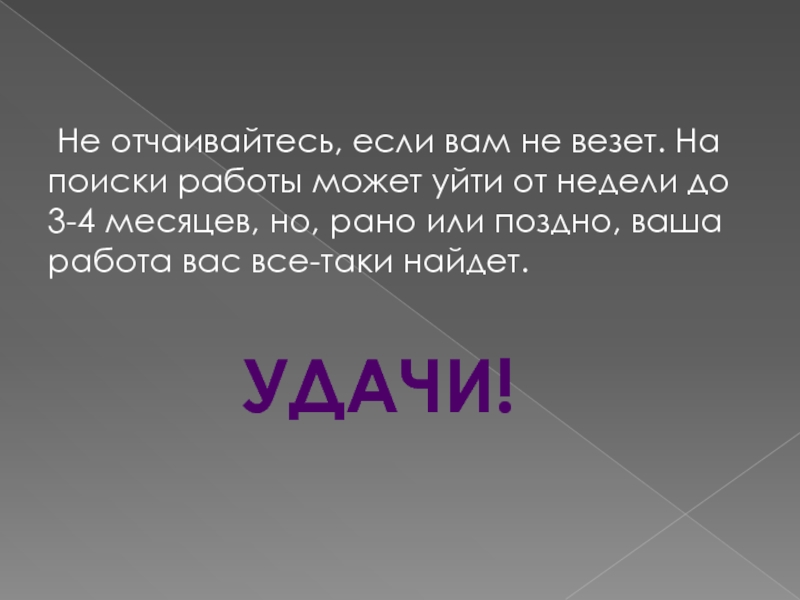 Не отчаивайтесь, если вам не везет. На поиски работы может