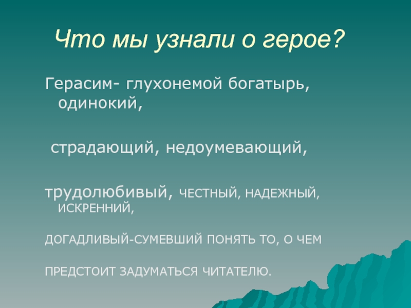 Слайд 11«Из… всей… челяди самым замечательным лицом был дворник Герасим…»