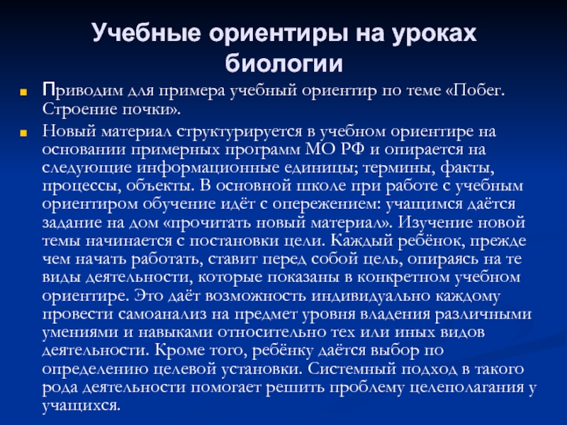Слайд 5Учебные ориентиры на уроках биологии