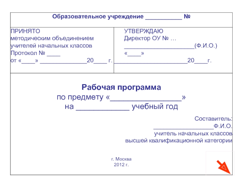 СТРУКТУРА РАБОЧЕЙ ПРОГРАММЫ (ВАРИАНТ)