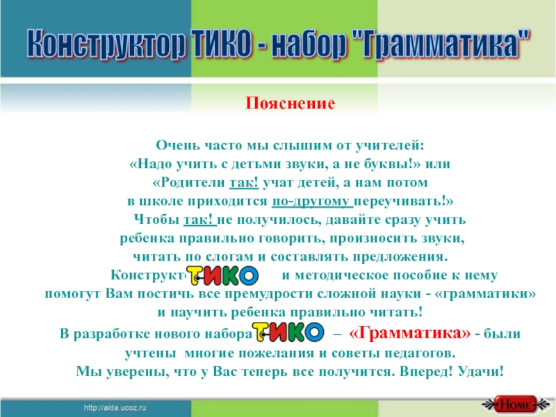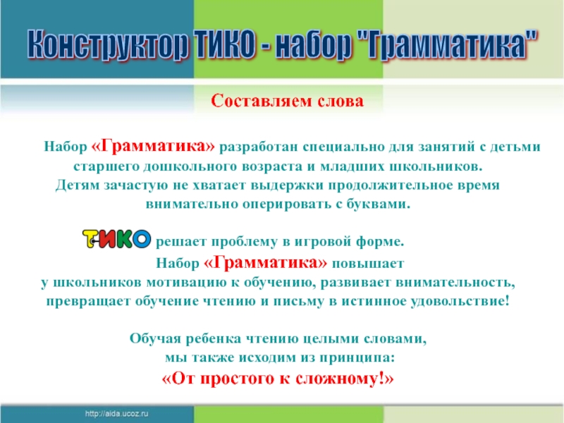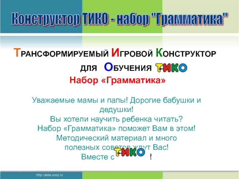 Слайд 2Конструктор ТИКО - набор "Грамматика"