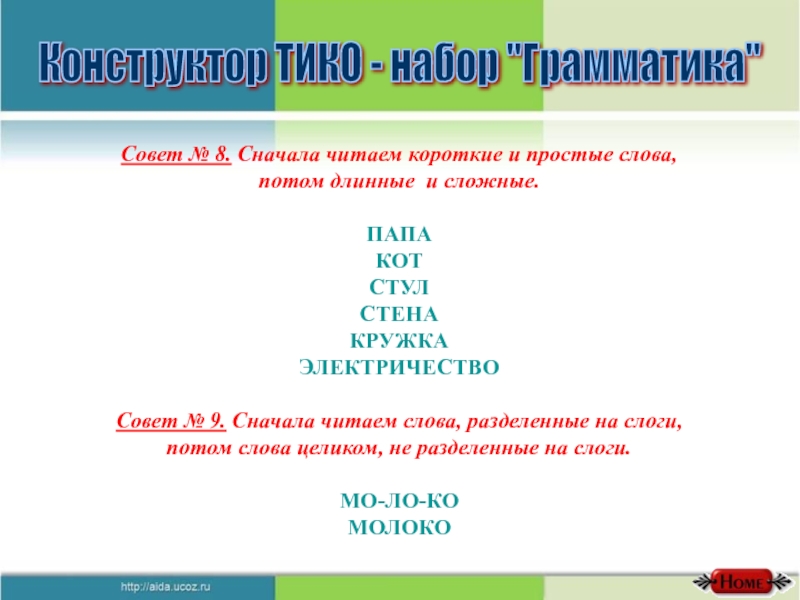 Совет № 9. Сначала читаем слова, разделенные на слоги,