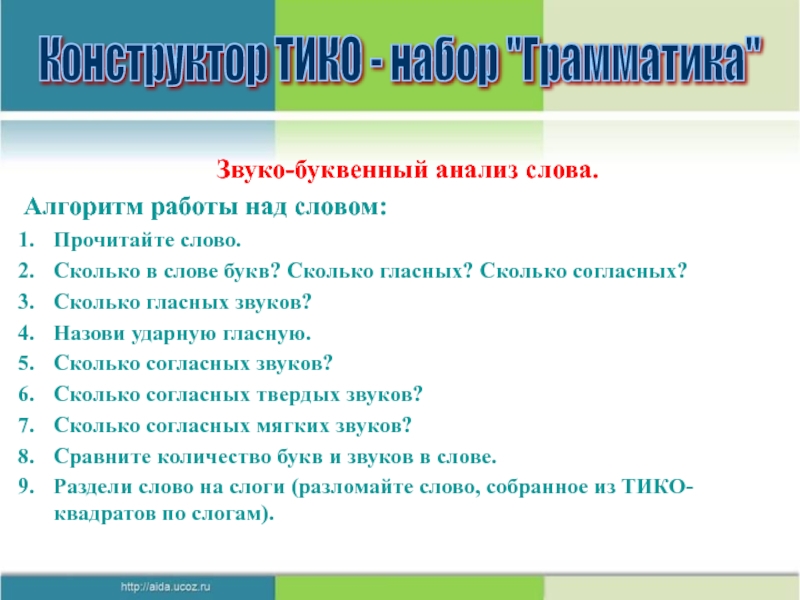 –деталей и выполните звукобуквенный анализ слов (по алгоритму).