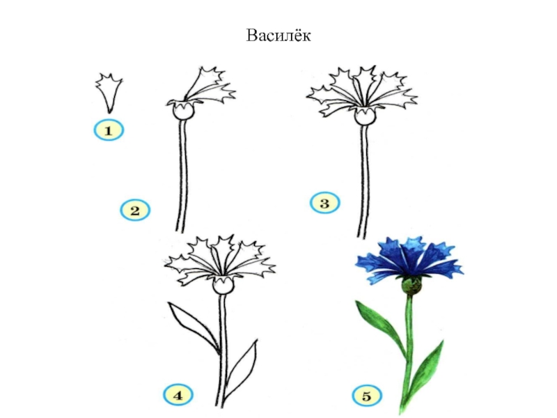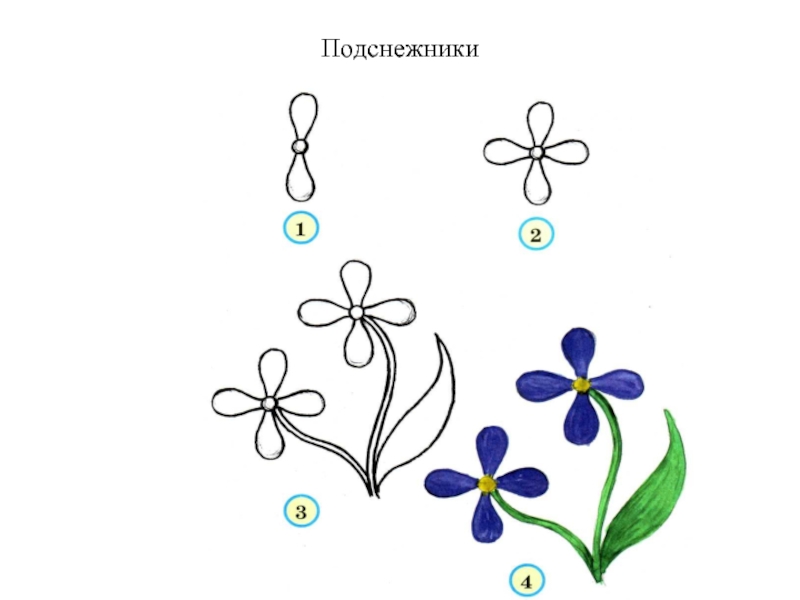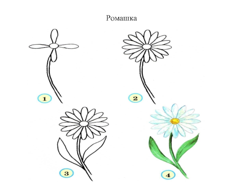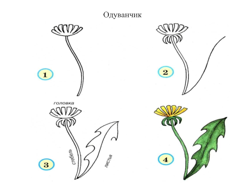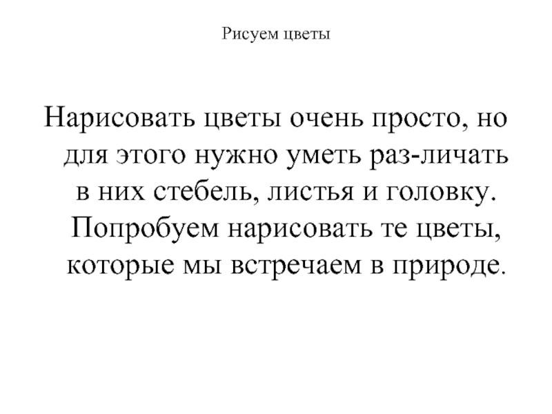 в них стебель, листья и головку. Попробуем нарисовать те цветы, которые мы встречаем в природе.