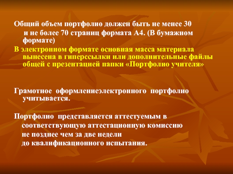 Портфолио представляется аттестуемым в
