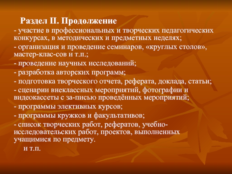 Слайд 8  Раздел II. Продолжение