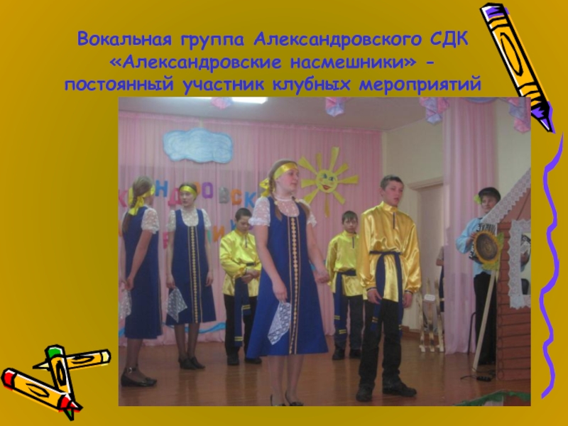 Слайд 47Вокальная группа Александровского СДК «Александровские насмешники» -
