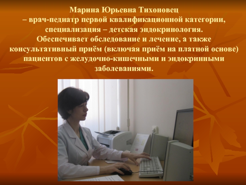 Ирина Антоновна на протяжении 12 лет руководит работой педиатрического отделения, является главным внештатным специалистом по детской гастроэнтерологии Управления здравоохранения Минской области. Обеспечивает консультативный приём (включая приём на платной основе) детей с желудочно-кишечными и аллергическими заболеваниями.