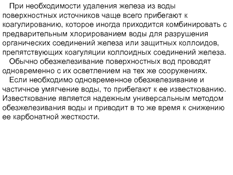 Слайд 24При необходимости удаления железа из воды поверхностных источников чаще всего прибегают