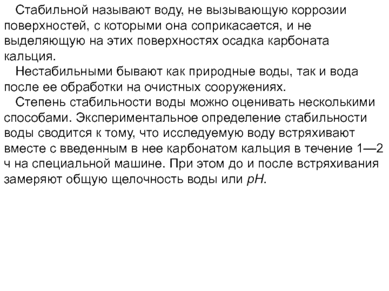 Слайд 6Стабильной называют воду, не вызывающую коррозии поверхностей, с которыми она соприкасается,
