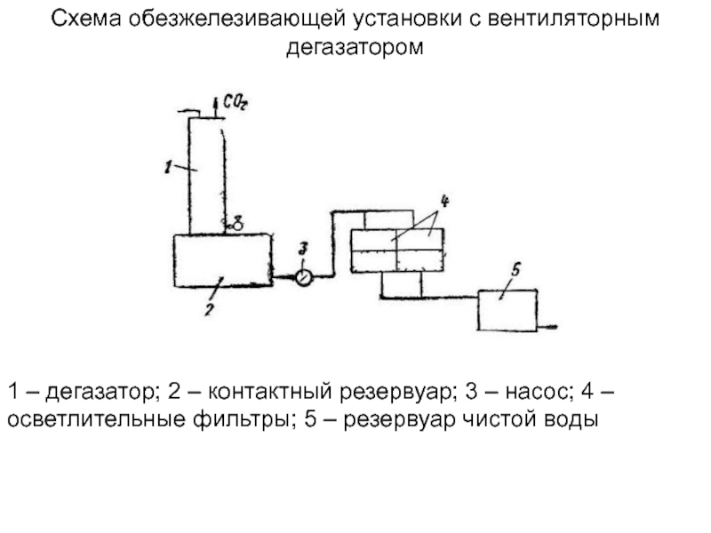 Слайд 21Схема обезжелезивающей установки с вентиляторным дегазатором