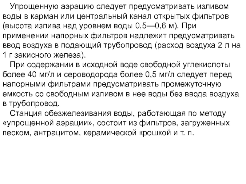Слайд 18Если пробным обезжелезиванием определено, что метод «упрощенной аэрации» и фильтрования не