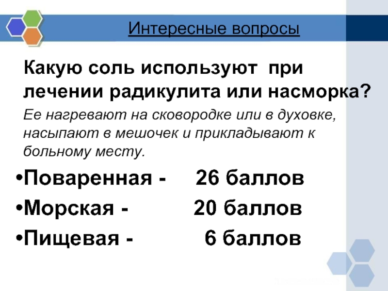 Морская соль - 16 баллов