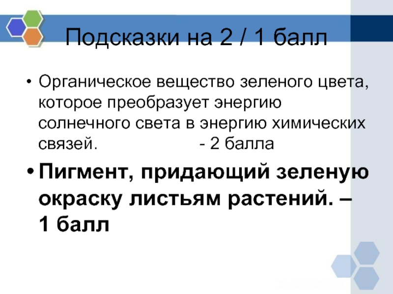 Слайд 43Подсказки на 2 / 1 балл