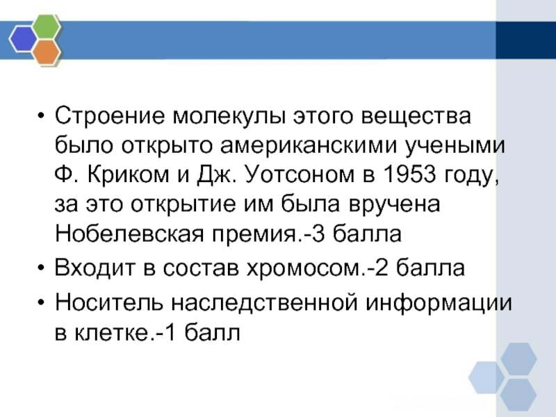 Дж. Уотсоном в 1953 году,за это открытие им была вручена Нобелевская премия.-3 балла