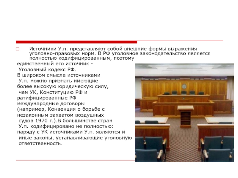 Источники У.п. представляют собой внешние формы выражения уголовно-правовых норм. В РФ