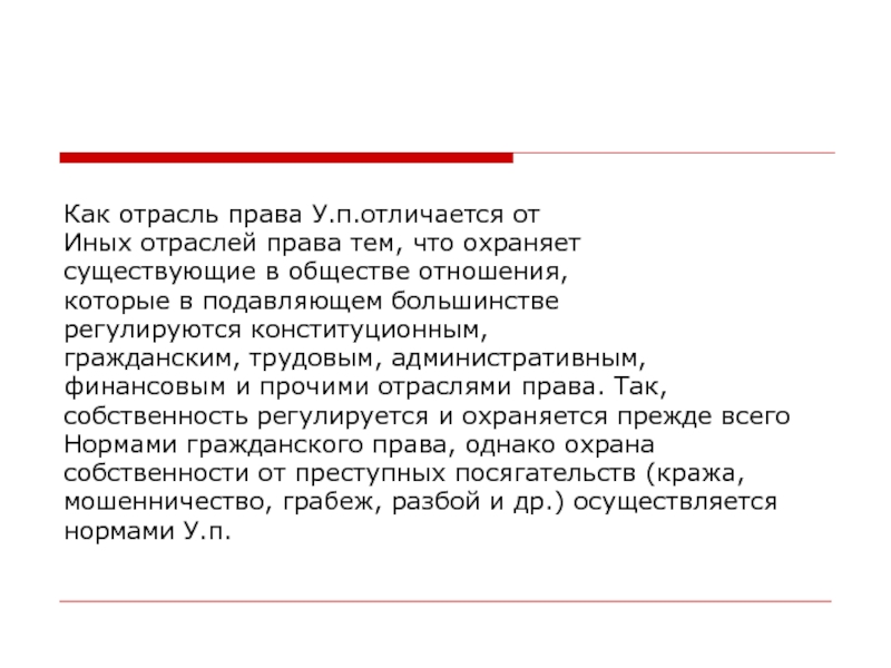 Как отрасль права У.п.отличается от