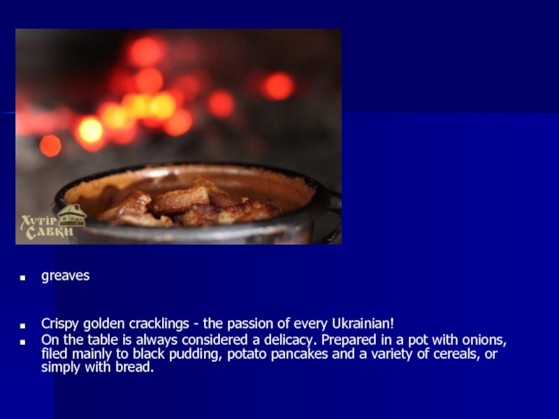 is always considered a delicacy. Prepared in a pot with onions, filed mainly to black pudding, potato pancakes and a variety of cereals, or simply with bread.