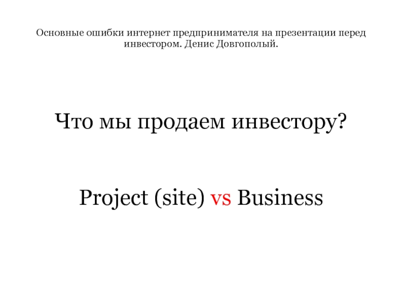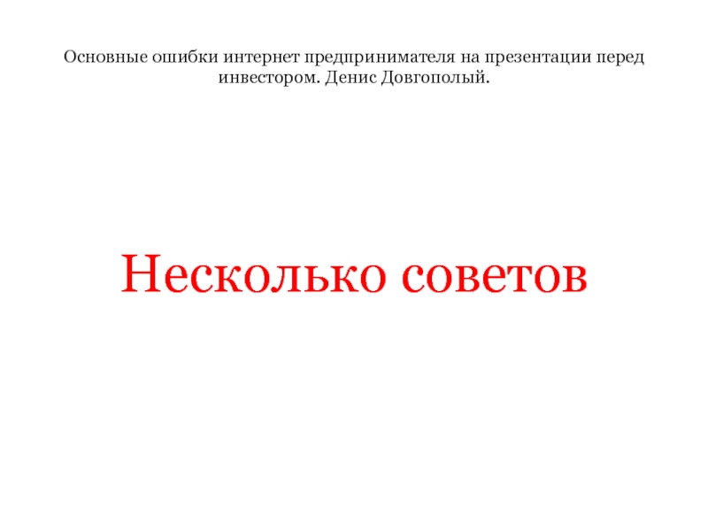 Слайд 2Основные ошибки интернет предпринимателя на презентации перед инвестором. Денис Довгополый.