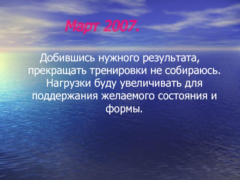 тренировки не собираюсь. Нагрузки буду увеличивать для поддержания желаемого состояния и формы.