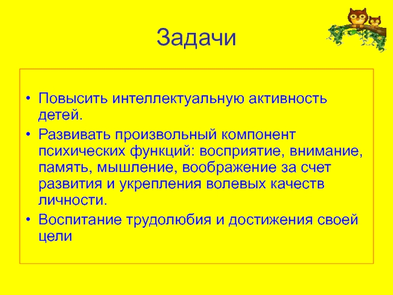 Развивать произвольный компонент психических функций: восприятие, внимание,