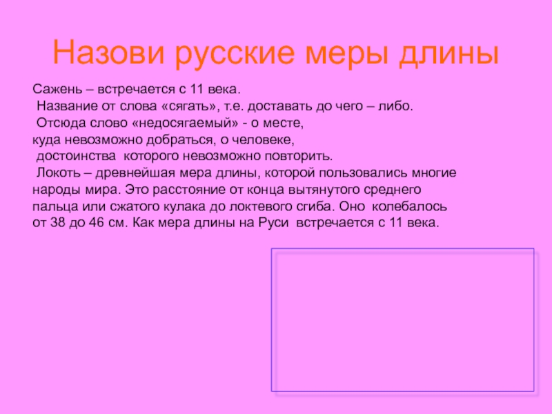 Слайд 7Назови русские меры длины