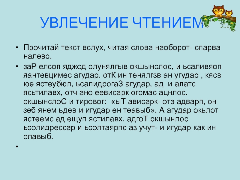 Прочитай текст вслух, читая слова наоборот- спарва налево.
