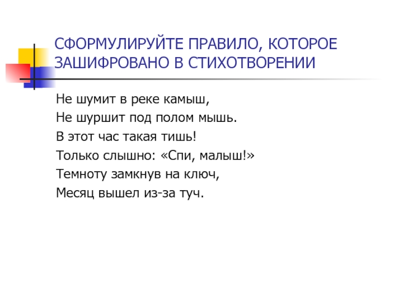 Слайд 4СФОРМУЛИРУЙТЕ ПРАВИЛО, КОТОРОЕ ЗАШИФРОВАНО В СТИХОТВОРЕНИИ