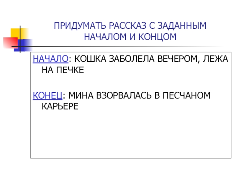 Слайд 8ПРИДУМАТЬ РАССКАЗ С ЗАДАННЫМ НАЧАЛОМ И КОНЦОМ