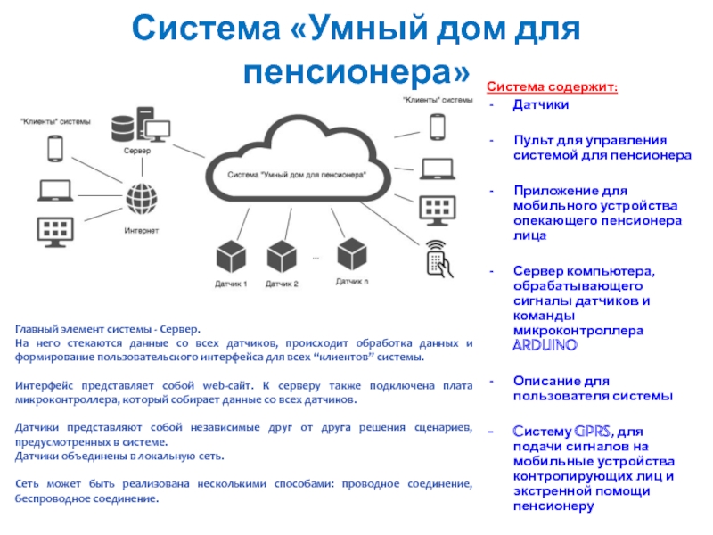 На него стекаются данные со всех датчиков, происходит обработка данных и формирование пользовательского интерфейса для всех “клиентов” системы.