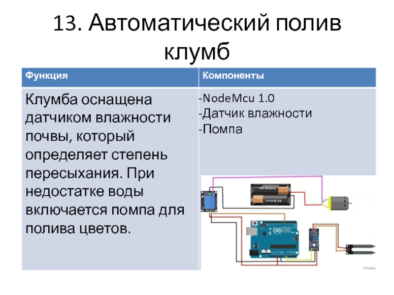 9. Полив растений при пересыхании почвы по показаниям датчика влажности