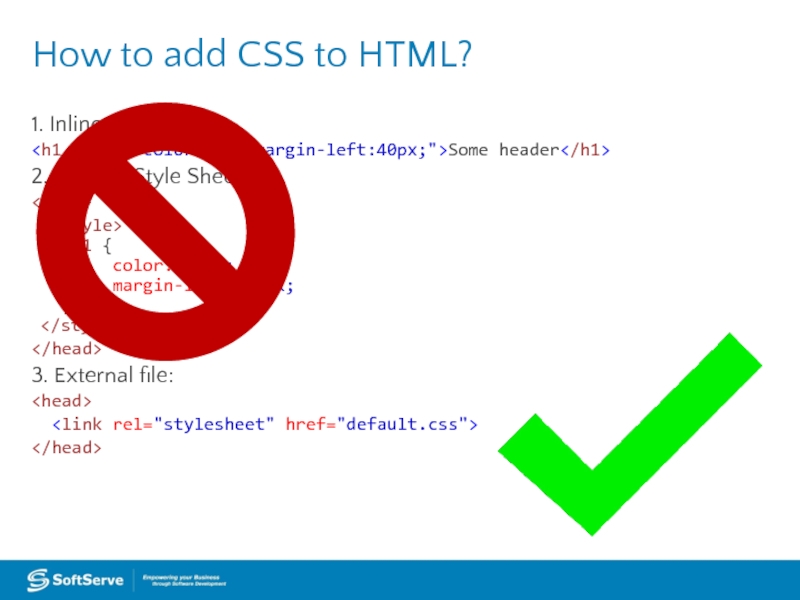 Слайд 51. Inline CSS: Some header 2. Internal Style Sheet:
