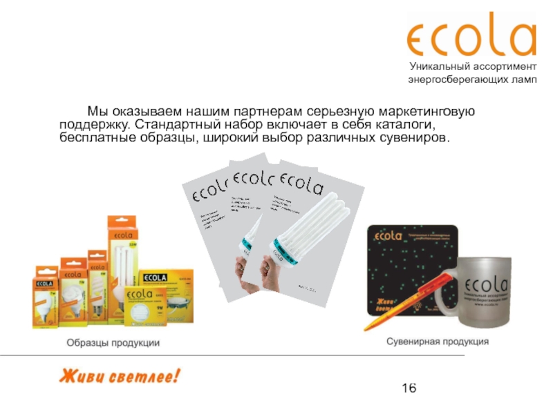 Причем на таких семинарах происходит не только доведение информации о конкретной торговой марке, но и общее повышение квалификации продающего персонала. Возможны мероприятия по стимулированию Ваших клиентов, партнеров, персонала (конечно, взаимно согласованные).