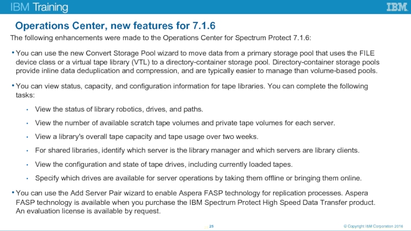 The following enhancements were made to the Operations Center for Spectrum Protect 7.1.6: