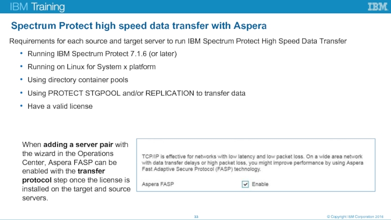 You can use the Add Server Pair wizard to enable Aspera FASP technology for replication processes. Aspera FASP technology is available when you purchase the IBM Spectrum Protect High Speed Data Transfer product. An evaluation license is available by request.