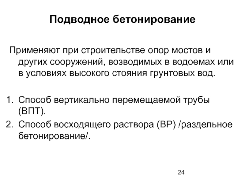 Слайд 28Раздельное бетонирование заключается в подаче цементно-песчаного раствора в пустоты между крупным