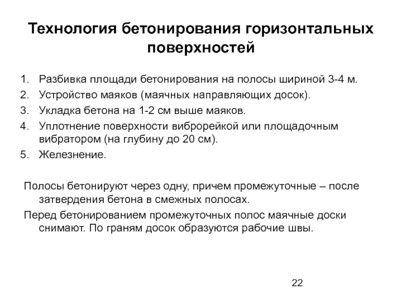 Слайд 22Технология бетонирования горизонтальных поверхностей