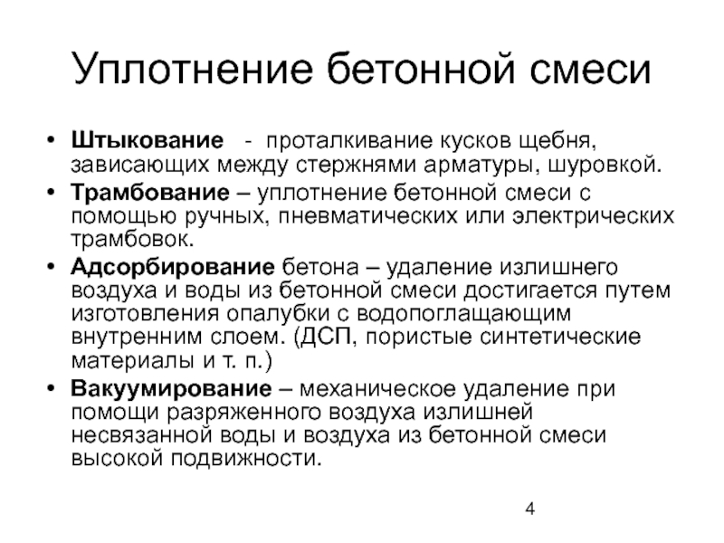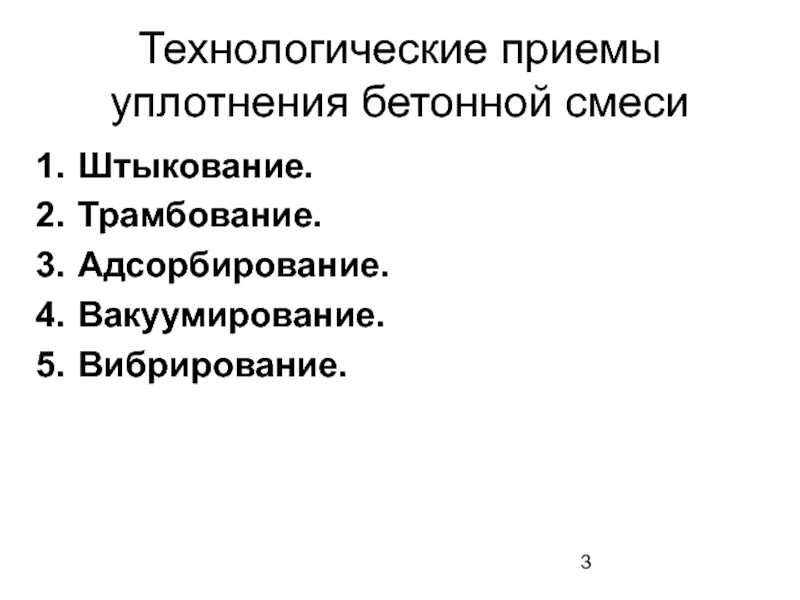 Слайд 3Технологические приемы уплотнения бетонной смеси