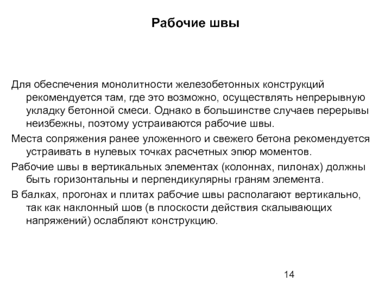 осуществлять непрерывную укладку бетонной смеси. Однако в большинстве случаев перерывы неизбежны, поэтому устраиваются рабочие швы.