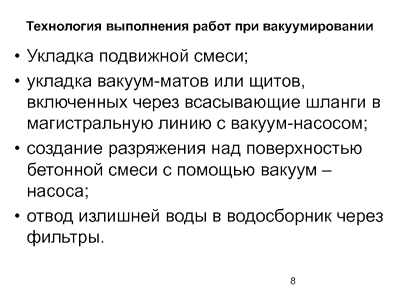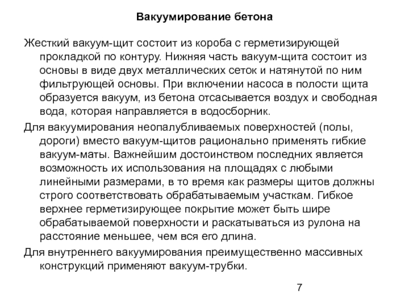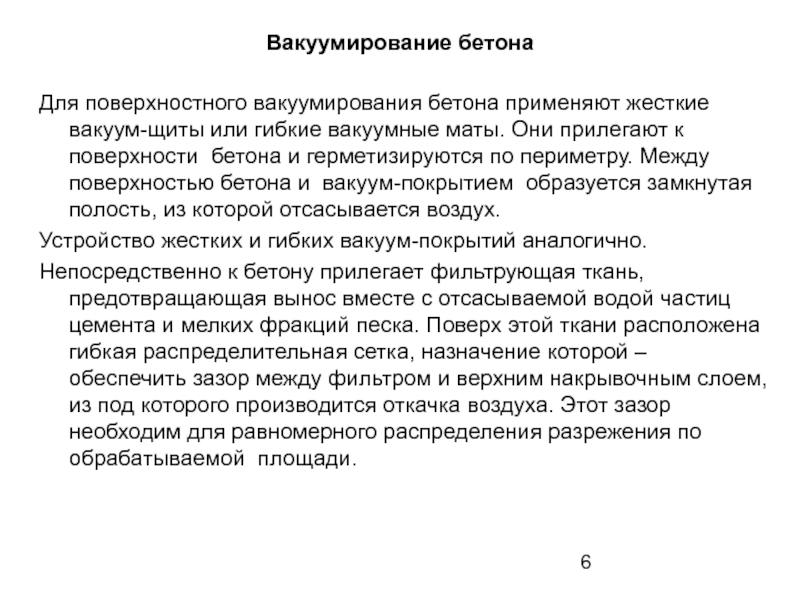 Вакуумирование – механическое удаление при помощи разряженного воздуха излишней несвязанной воды и воздуха из бетонной смеси высокой подвижности.