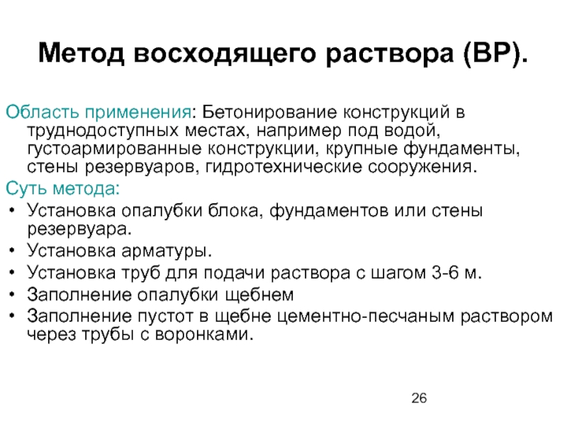 Способ восходящего раствора (ВР) /раздельное бетонирование/.