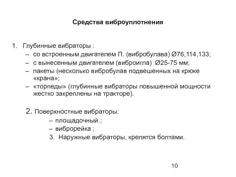 Слайд 11Вибраторы для уплотнения бетонной смеси: