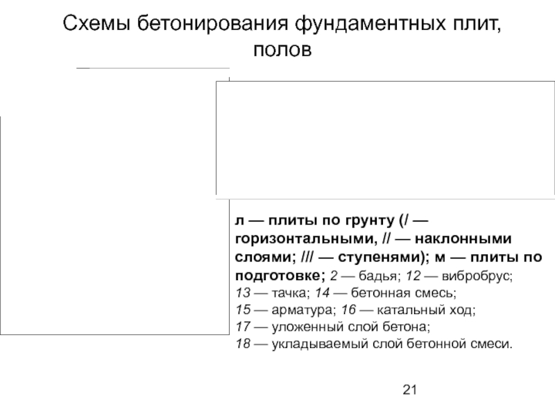 Слайд 21Схемы бетонирования фундаментных плит, полов
