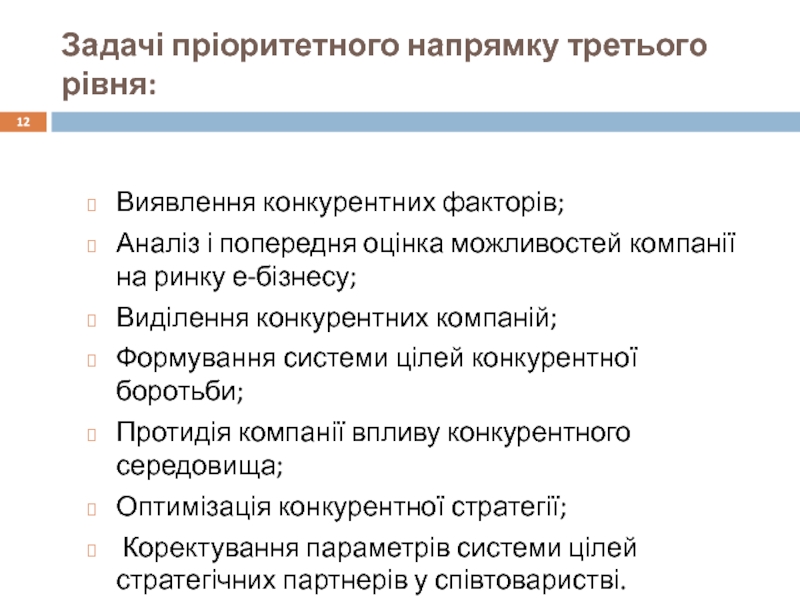 Слайд 12Задачі пріоритетного напрямку третього рівня: