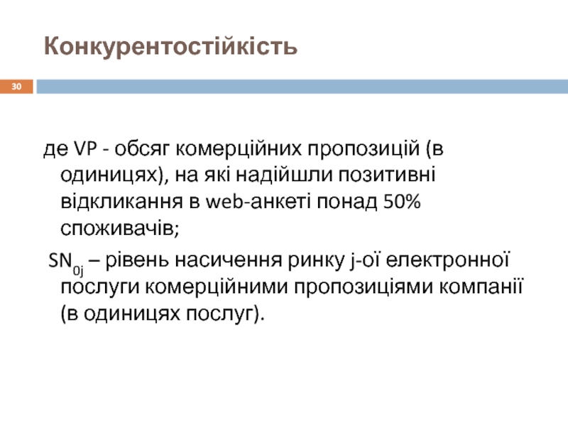 SN0j – рівень насичення ринку j-ої електронної послуги комерційними пропозиціями компанії (в одиницях послуг).
