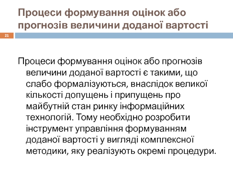 Слайд 21Процеси формування оцінок або прогнозів величини доданої вартості