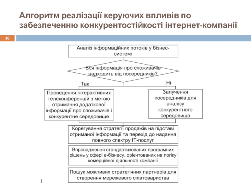 Слайд 36Алгоритм реалізації керуючих впливів по забезпеченню конкурентостійкості інтернет-компанії