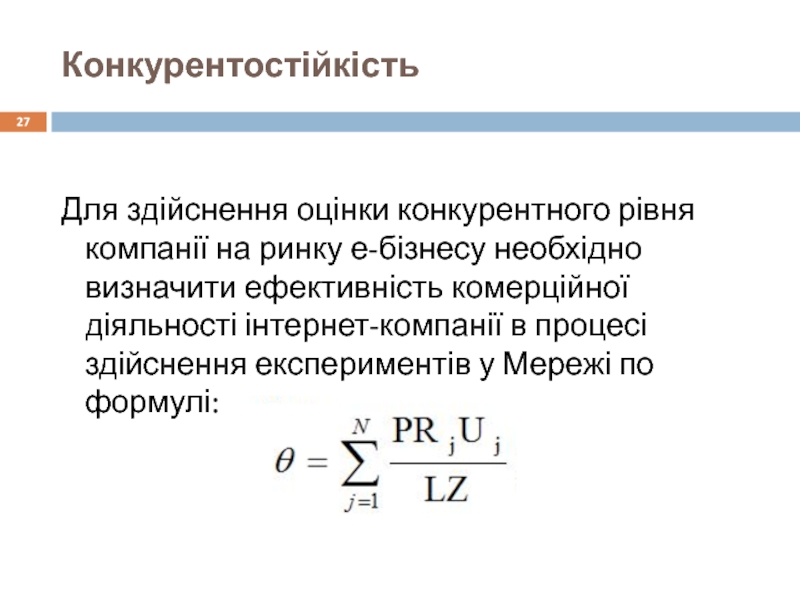 Для здійснення оцінки конкурентного рівня компанії на ринку е-бізнесу необхідно визначити