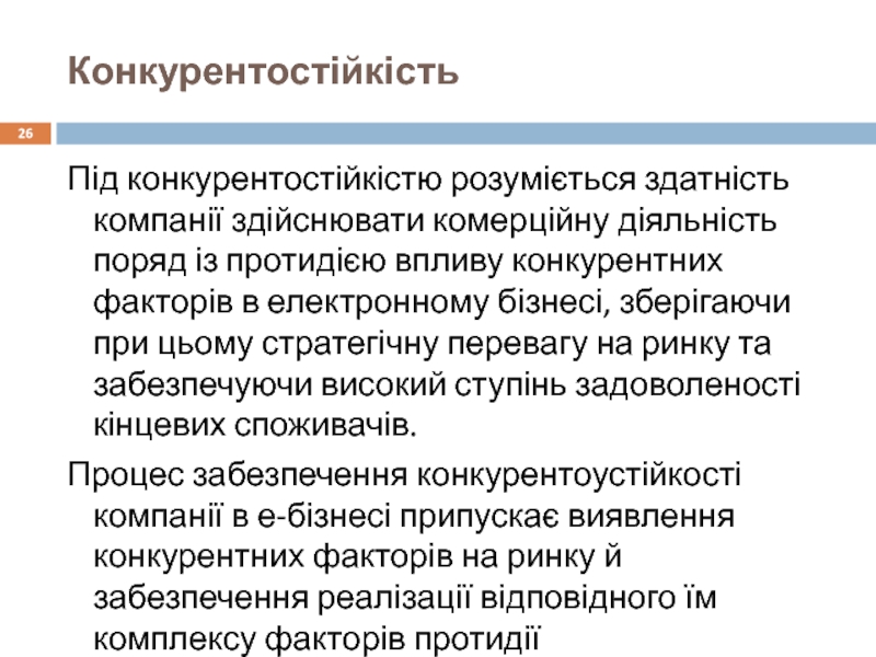 Процес забезпечення конкурентоустійкості компанії в е-бізнесі припускає виявлення конкурентних факторів на ринку й забезпечення реалізації відповідного їм комплексу факторів протидії