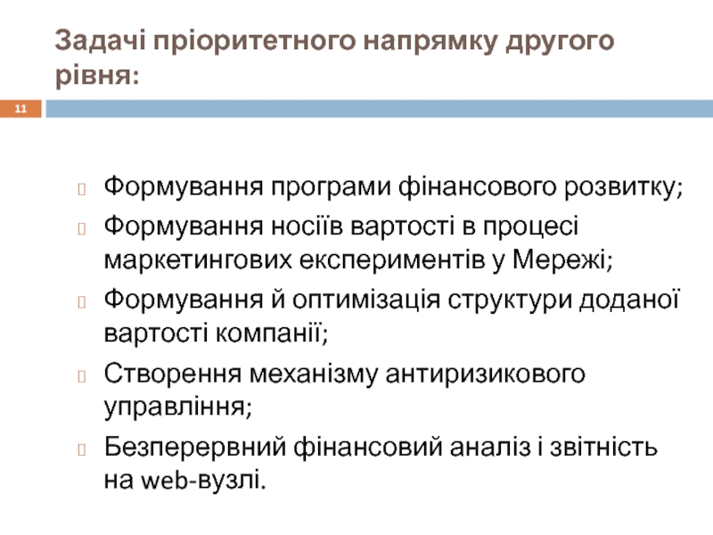 Слайд 11Задачі пріоритетного напрямку другого рівня: